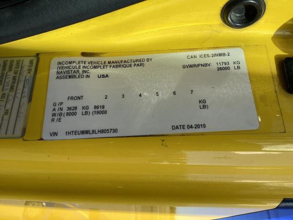 IInternational Model MV Extra Cab. 6.7L Cummins, 260HP, 660lbs-ft, Allison RDS-2200 6 Speed Automatic. Air brake package. Air Dryer with Heater. 20,000lb , Air Ride suspension with Dump valve., 144" CA, Exhaust Brake,, AM/FM/Bluetooth, 4 speakers, Factory Switches, Power Windows & Door Locks, Chrome Bumper & Grille, 255/70R22.5 Tires w/ 22.5 Alum Wheels, Visor, Power Mirrors, Heated, ,8,000lb front axle. 19,000lb Rear axle.7 gallon DEF tank. 40 gallon & 50 gallon fuel tanks, Air cab mounts. Air ride driver , and passenger seats, Rear bench seat, 26,000lb GVWRPP1 Engine, aftertreatment warranty originally purchased. 5 year 300K = Exp 12/03/2025.