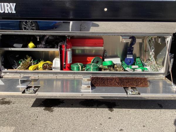 RAM 5500 SLT Reg Cab w/ Cummins 6.7L I-6 OHV Direct Diesel Injection, 24 Valve Intercooled Turbo, 325HP @ 3,000 rpm, 750 lb-ft @ 1,600 rpm, 136 amp Alternator, 6 Speed Automatic Aisin AS68RC, Exhaust brake. Engine Block Heater, 120" CA, 4 Wheel Disc Brakes w/ Front and rear Vented Discs, Non-Independent Front Suspension, Rear Leaf Suspension, 4 Wheel Anti-Lock Braking System, Daytime Running Lights, Dual Air Bags, A/C, 5" Touch Screen AM/FM/CD Radio, Cruise Control, Power Windows, Power Door Locks, 40-20-40 Split Bench Seat, Vinyl Black Material, Upfitter Switches (5). 19,500 GVWR, Chrome Cab Steps, 22 Gal Fuel Tank, 225/70R19.5 Tires w/ 19.5 Alum Wheels19.6 FT Steel carrier with Independent Wheelift. Full-Length Slide Pads. 8,000lb Winch. Hydraulic pump. Painted Black. Backup lights, backup Alarm. Tow light socket. Bed anti-tilt lockout/ right and left Chain Trays. Safety Chains (2-front, 2 rear) Dual lighted controls. FMVS 108 Lighting group. Wheelift safety pin. Full Height cab protector.Stainless steel tail light plates. Cable Roller guide. Cable tensioner. Positive lock-down. Prewired Junction box. Straps and Ratchets for Wheelift., Ratchets, 11 Chain lock package body- Body Serial # ST10C2D243113