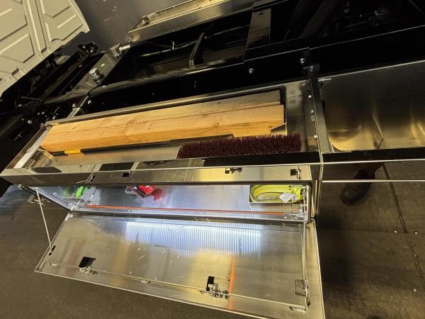 TB: Toolbox, Aluminum, 69", Driver-Side, SS Door, Integrated Top Tray, Equipment Brackets