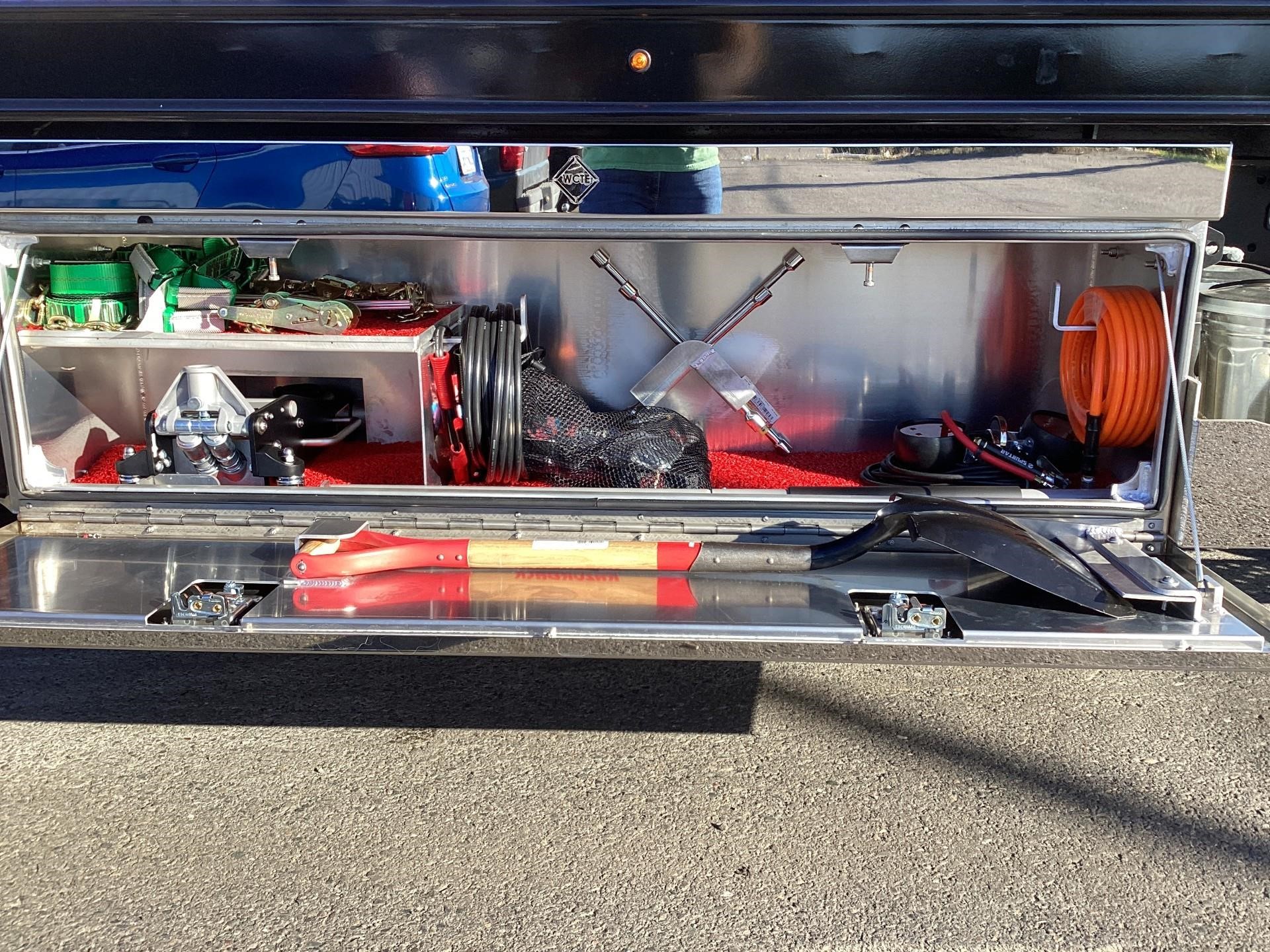 TB: Toolbox, Aluminum, 69", Passenger-Side, SS Doors, Integrated Top Tray, Equipment Brackets