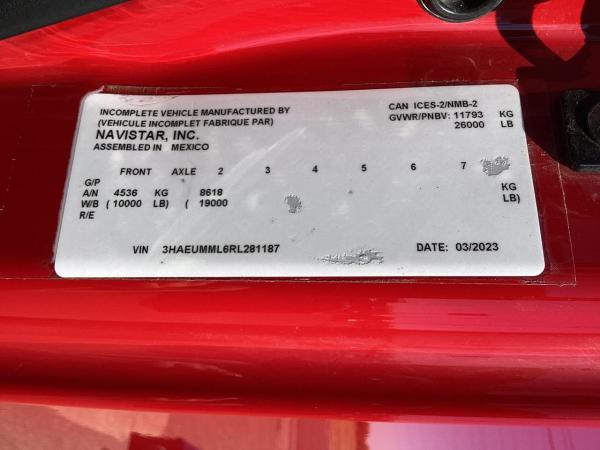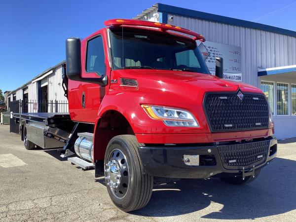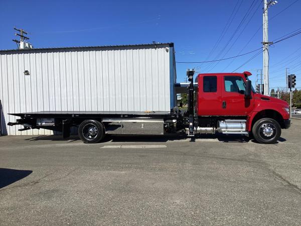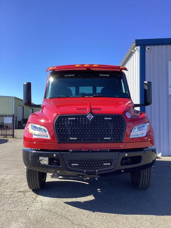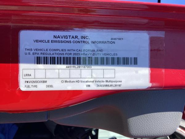 International Model MV Extended cab. Cummins ISB 6.7L, 325HP @ 2,300 rpm, 750 lb-ft @ 1,600 rpm, Allison RDS-3000 6 Speed Auto, Air Brakes, Air Dryer Heater, Exhaust Brake, Front Axle: Dana-Spicer I-Beam 10,000lb w/ Shock Absorbers, Rear Axle: Dana-Spicer 19,000lb rear axle.. , 21,000lb Air Ride Suspension, with gauge, 4.88 Rear Axle Ratio, Chrome Bumper, black Grille, Air Ride Driver Seat,& Passenger Seat, rear bench seat. Idle Up, Cruise Control, Tilt-Wheel, AM/FM/CD/MP3 w/ Bluetooth, Air Horn, Engine Block Heater, Dual 40-50 Gal Alum Fuel Tanks, 7 Gal DEF Tank, Power Windows, Power Door Locks, Power heated Mirrors. A/C, 255/70R22.5 Tires w/ 22.5 Alum Wheels, Cup holders.Visor 25,500 GVWR,Extended Warranties.- Engine Warranty: 5 yr / 300k miles PPI & after treatment. -- Special order options on chassis- Wing, Dash, 156" CA Keyless Entry, Alcoa DURA Black. Air Ride Driver & Passenger seat. Black Grille, Black Bumper,