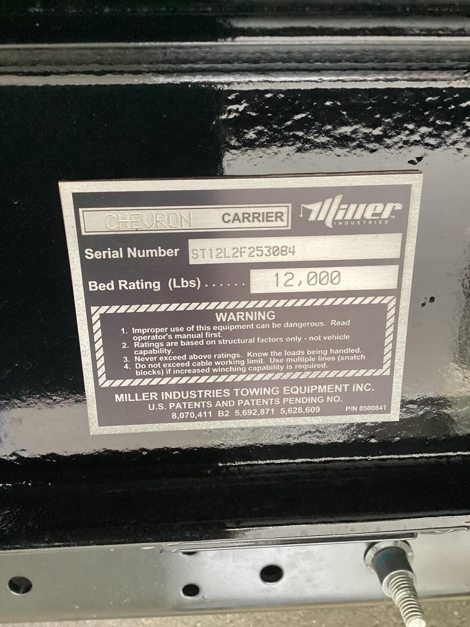 Century LCG 12 21.5' Steel LCG (Low Center of Gravity) Carrier w/ Wheel Lift, 3/16 Deck Plate, 2x2 Corten Tube Crossmembers on 8 inch Centers, (4) Rear Chain Locks, (2) Front Chain Locks, (6) Floor Plate Chain Locks (3 per side), 8K Ramsey winch, 3/8" x 50' Winch Cable, Illuminated Dual Controls, FMVSS 108 Lamp Group Shock Mounted Lighted, Direct Mount Pump, Cable Roller Guide w/ Tensioner, Winch Free Spool Extension, Back-Up Alarm, (2) Safety Chains, Mechanical Anti-tilt, Black Body Paint, 102" Wide Body, Inboard Tilt Cylinders, Floor Level Roll Formed w/ Punched Stake Pockets, 4,000lb Wheel Lift w/ Releasable L Arms, Fully Hydraulic Wheel Lift, (2) Safety Straps & Ratchets, (2) Rear Safety Chains, Body Lock w/ Nylatron roller Bearings, & 12,000lb Deck Load Rating, Body Serial # ST12L2F253084