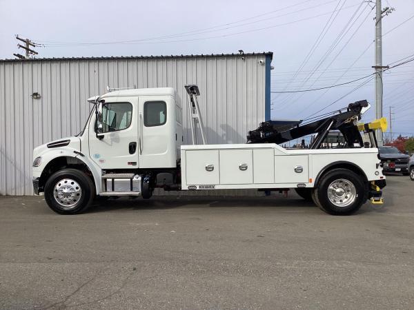 FRTR M2 Plus- 132 BBC Alumiunm cab. Air Ride Cab Mounts. ISL 9 350HP Cummins Allison automatic RDS 3000 six-speed. air brake. air ride Exhaust Brake, settings. , tractor package, aluminum wheels, 12k front axle, 12,000lb front suspension. 21000lb rear axle 4.33 Ratio. . 23k Air ride with dump valve,, and gauge.. Locking Rear differential. Visor, chrome 3-piece bumper. Air Dryer with heater. Air connections to EOF. air ride driver seat Vinly high back passenger seat, Rear bench seat. Locking rear Diff. Tractor package. LED POD headlights. block heater. Tilt & Telescoping Steering wheel. Dual 50-gallon Aluminum fuel tanks. Dual 26" Hadley Air horns. Power Mirrors. Power windows, Power locks. Idle up, Cruise control, PTO Switch. Trailer hand control valve. A/C. Keyless entry. block heater, Air Dryer. 275/80R22.5 14 PLY Michelin Tires. 33,000 GVWR 138 CA 230" WBCentury 3212 CENTURY MODEL 16- Ton CX 138" CA Body option. BOOM SPECIFICATIONS: Retracted 32,000 lbs.; Extended 12,000 lbs. Maximum Angle 36° Maximum Hook Height 160" Maximum Reach past Tailboard at 30°54" UNDERLIFT SPECIFICATIONS: Fully Retracted (with Forks)12,000 lbs. Fully Extended (with Forks)8,500 lbs. Extended or Retracted with L-Arms 6,000 lbs. Underlift Reach to Center of Fork Holder. At Normal Tow Position 84" Positive Tilt20° Negative Tilt10° Tow Rating32,000 lbs. WINCH RATING & CABLE Rating (first layer of drum) each Winch 15,000 lbs. Diameter and Length (each winch)1/2" x 150' Type 6 x 37 IWRC STANDARD FEATURES 138" Aluminum (LOW PROFILE CX Body) Modular Body. with 3 Compartments Per SideLanyard Controls for Underlift & Boom. on the Passenger Side Manual Control Station on the Drivers Side Chrome Double Action Latches. Dual Hydraulic Pump 3 Sets of Lift Forks. Hydraulic Rear Jacks with Flipper FeetRubber Fenders. 6,000 lb. L-Arms with Pivoting ReceiversSafety Chains, Door ClosuresTailboard "D" Rings, LED Tool, Compartment LightingFederal Standard 108 Lighting, Cable Tiebacks LED Taillights, Mud Flaps, Clear LED Lights Body. Body Serial # 32121D251660