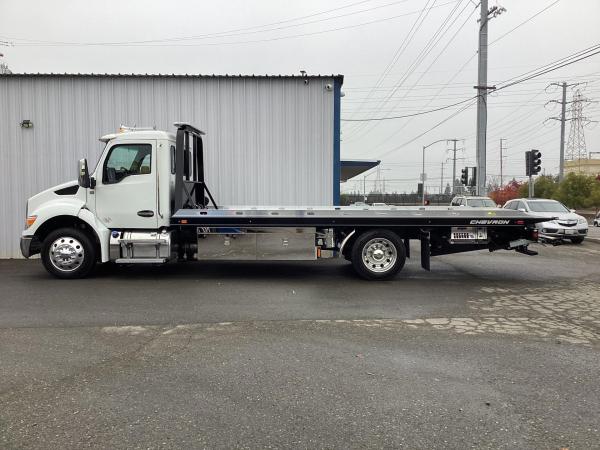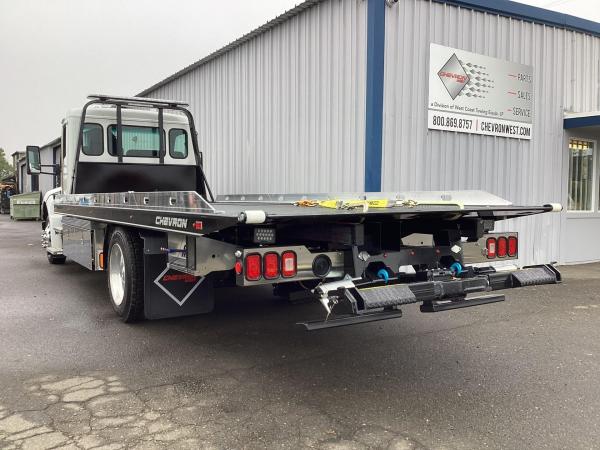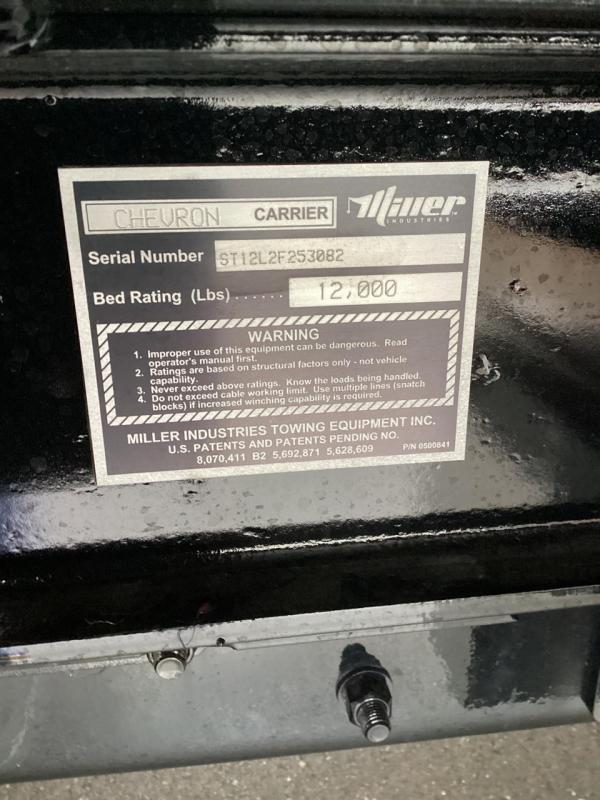 Chevron 21.5' Steel LCG (Low Center of Gravity) Carrier w/ Wheel Lift, 3/16 Deck Plate, 3x2 Corten Tube Crossmembers on 8 inch Centers, (4) Rear Chain Locks, (2) Front Chain Locks, (6) Floor Plate Chain Locks (3 per side), 8,000lb Worm Gear Winch, 3/8" x 50' Winch Cable, Illuminated Dual Controls, FMVSS 108 Lamp Group Shock Mounted Lighted, Direct Mount Pump, Cable Roller Guide w/ Tensioner, Winch Free Spool Extension, Back-Up Alarm, (2) Safety Chains, Mechanical Anti-tilt, Black Body Paint, 102" Wide Body, Inboard Tilt Cylinders, Floor Level Roll Formed w/ Punched Stake Pockets, 4,000lb Wheel Lift w/ Releasable L Arms, Fully Hydraulic Wheel Lift, (2) Safety Straps & Ratchets, (2) Rear Safety Chains, Body Lock w/ Nylatron Roller Bearings, & 12,000lb Deck Load Rating. Body Serial # ST12L2F253082
