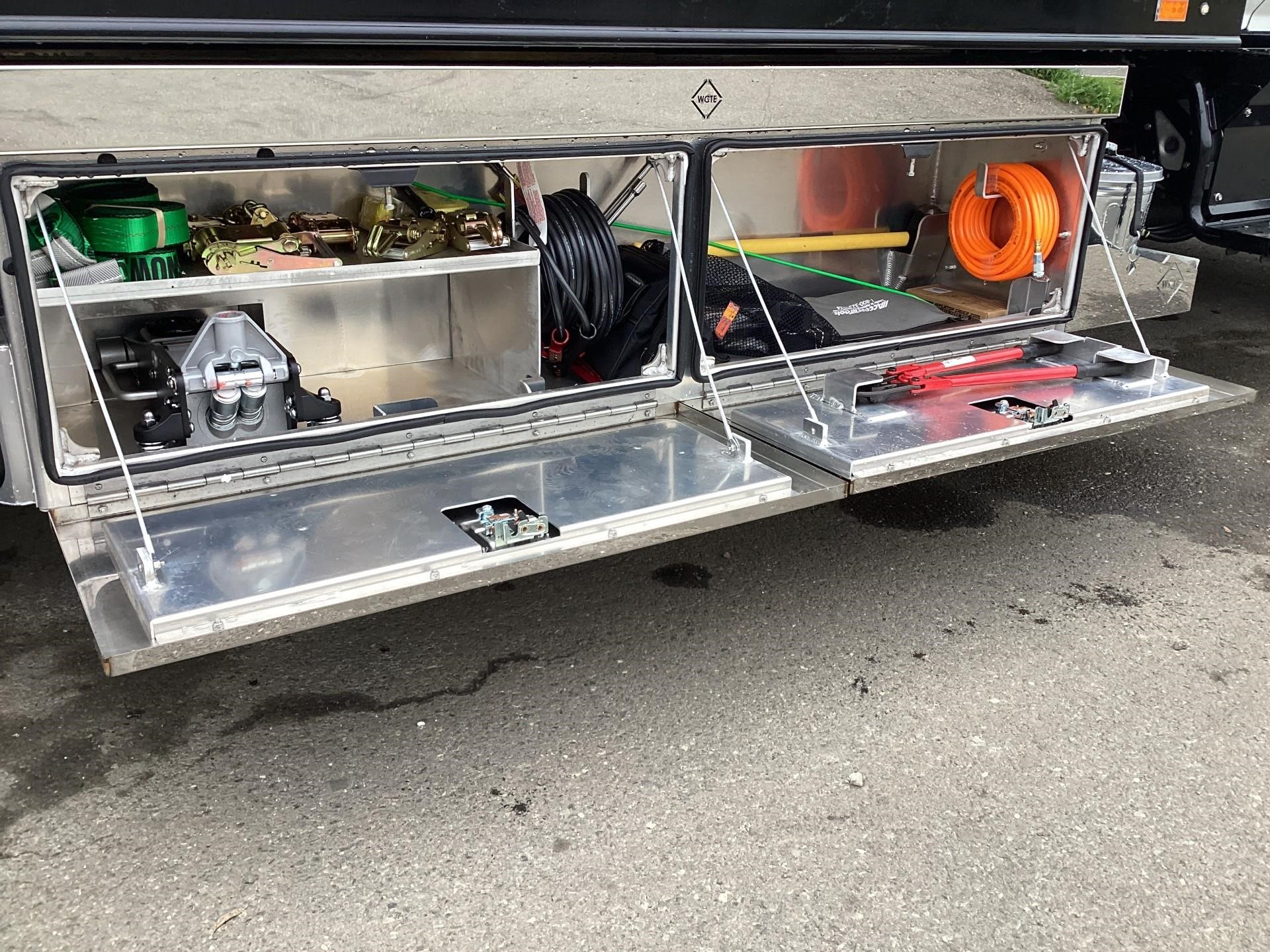 Chevron LCG 12 21.5' Steel LCG (Low Center of Gravity) Carrier w/ Wheel Lift, 3/16 Deck Plate, 2x2 Corten Tube Crossmembers on 8 inch Centers, (4) Rear Chain Locks, (2) Front Chain Locks, (6) Floor Plate Chain Locks (3 per side), 8K Ramsey winch, 3/8" x 50' Winch Cable, Illuminated Dual Controls, FMVSS 108 Lamp Group Shock Mounted Lighted, Direct Mount Pump, Cable Roller Guide w/ Tensioner, Winch Free Spool Extension, Back-Up Alarm, (2) Safety Chains, Mechanical Anti-tilt, Black Body Paint, 102" Wide Body, Inboard Tilt Cylinders, Floor Level Roll Formed w/ Punched Stake Pockets, 4,000lb Wheel Lift w/ Releasable L Arms, Fully Hydraulic Wheel Lift, (2) Safety Straps & Ratchets, (2) Rear Safety Chains, Body Lock w/ Nylatron roller Bearings, & 12,000lb Deck Load Rating, Body Serial #