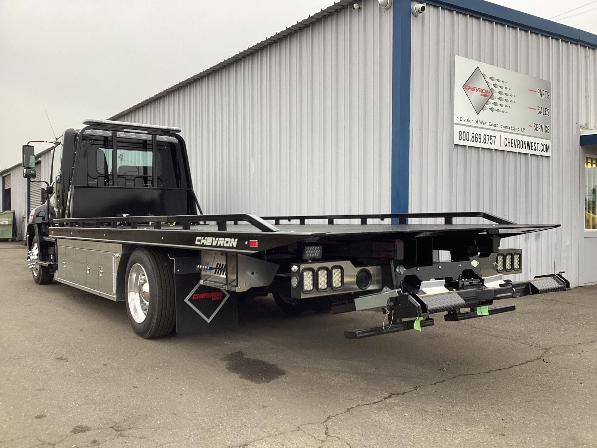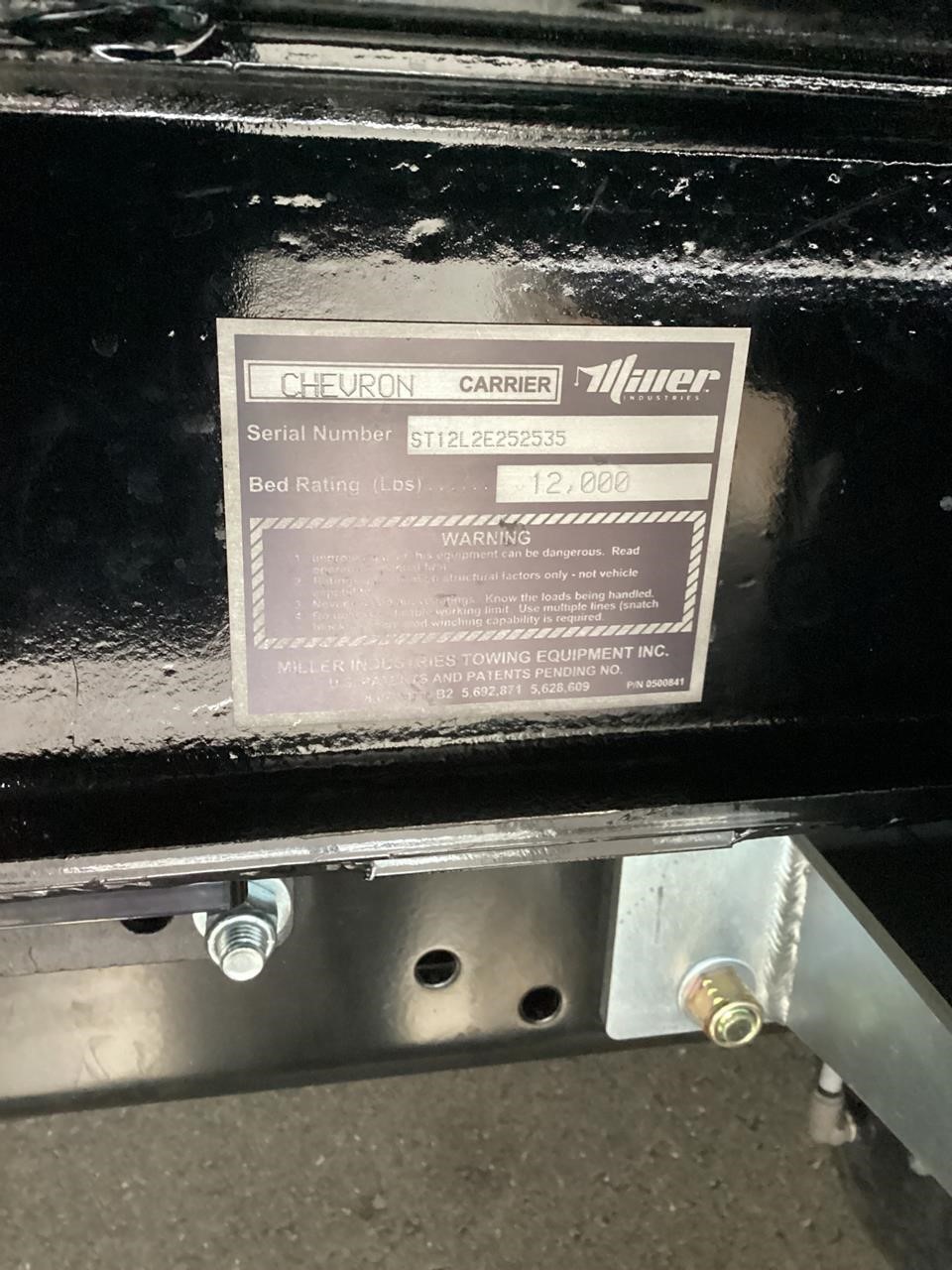 Chevron LCG 12 21.5' Steel LCG (Low Center of Gravity) Carrier w/ Wheel Lift, 3/16 Deck Plate, 2x2 Corten Tube Crossmembers on 8 inch Centers, (4) Rear Chain Locks, (2) Front Chain Locks, (6) Floor Plate Chain Locks (3 per side), 8K Ramsey winch, 3/8" x 50' Winch Cable, Illuminated Dual Controls, FMVSS 108 Lamp Group Shock Mounted Lighted, Direct Mount Pump, Cable Roller Guide w/ Tensioner, Winch Free Spool Extension, Back-Up Alarm, (2) Safety Chains, Mechanical Anti-tilt, Black Body Paint, 102" Wide Body, Inboard Tilt Cylinders, Floor Level Roll Formed w/ Punched Stake Pockets, 4,000lb Wheel Lift w/ Releasable L Arms, Fully Hydraulic Wheel Lift, (2) Safety Straps & Ratchets, (2) Rear Safety Chains, Body Lock w/ Nylatron roller Bearings, & 12,000lb Deck Load Rating, Body Serial #