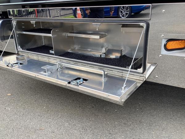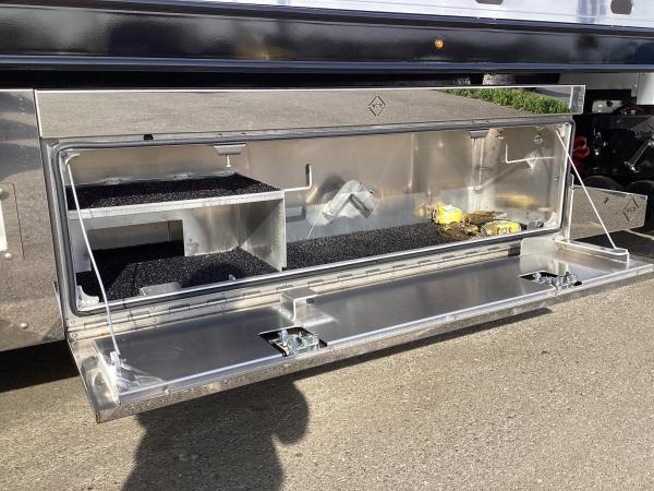 TB: Toolbox, Aluminum, 69", Passenger-Side, SS Doors, Integrated Top Tray, Equipment Brackets