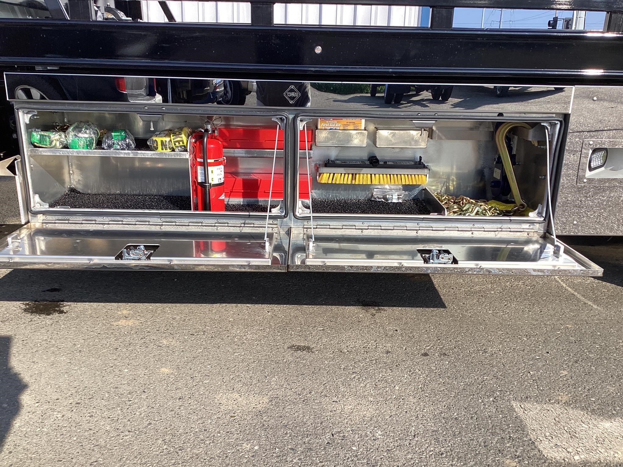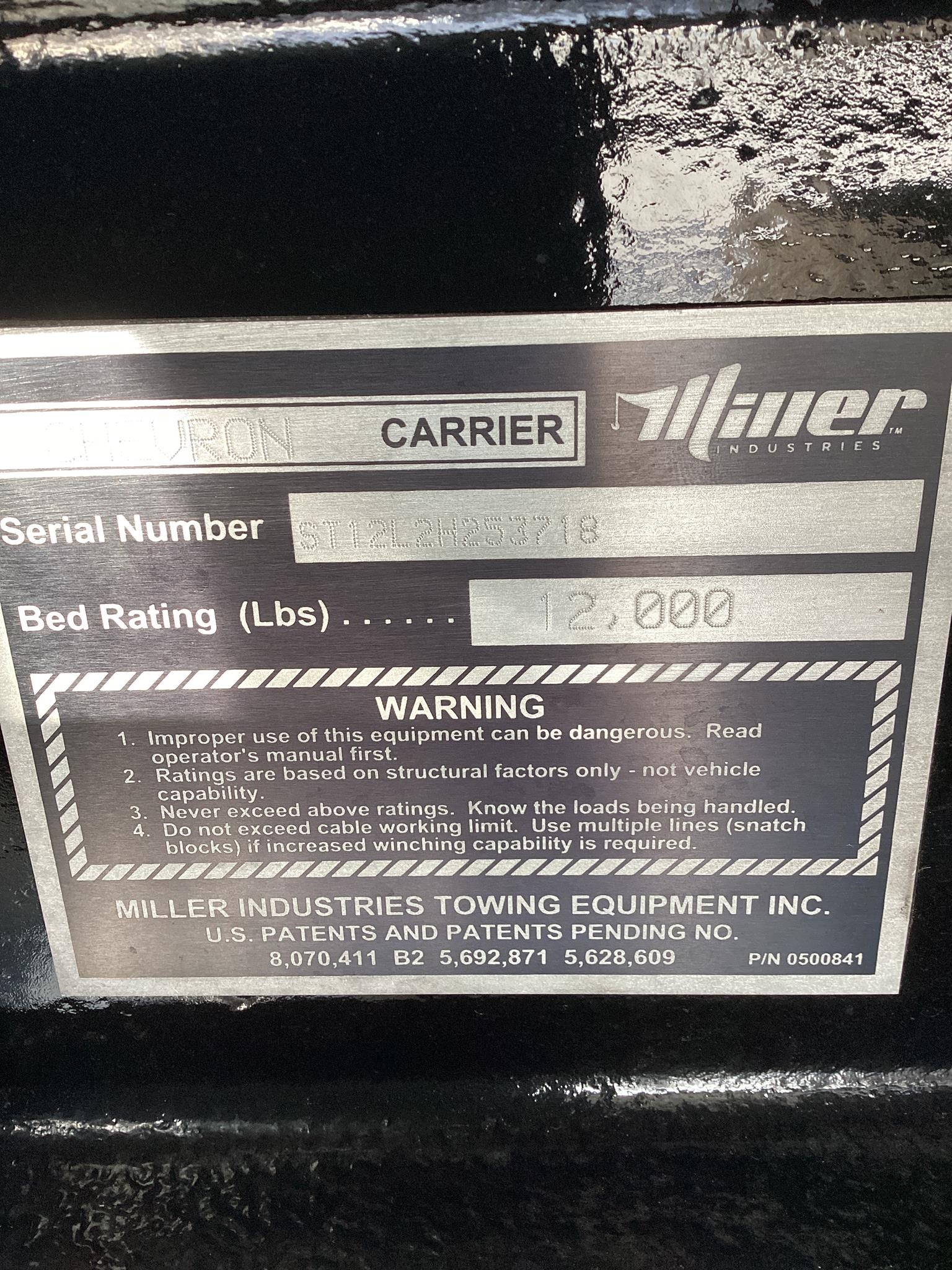 Century Steel LCG (Low Center of Gravity) Carrier w/ Wheel Lift, 3/16 Deck Plate, 3x2 Corten Tube Crossmembers on 8 inch Centers, (4) Rear Chain Locks, (2) Front Chain Locks, (6) Floor Plate Chain Locks (3 per side), 8,000lb Worm Gear Winch, 3/8" x 50' Winch Cable, Illuminated Dual Controls, FMVSS 108 Lamp Group Shock Mounted Lighted, Direct Mount Pump, Cable Roller Guide w/ Tensioner, Winch Free Spool Extension, Back-Up Alarm, (2) Safety Chains, Mechanical Anti-tilt, Black Body Paint, 102" Wide Body, Inboard Tilt Cylinders, Floor Level Roll Formed w/ Punched Stake Pockets, 4,000lb Wheel Lift w/ Releasable L Arms, Fully Hydraulic Wheel Lift, (2) Safety Straps & Ratchets, (2) Rear Safety Chains, Body Lock w/ Nylatron Toller Bearings, & 12,000lb Deck Load Rating. Body # ST12L2H253718