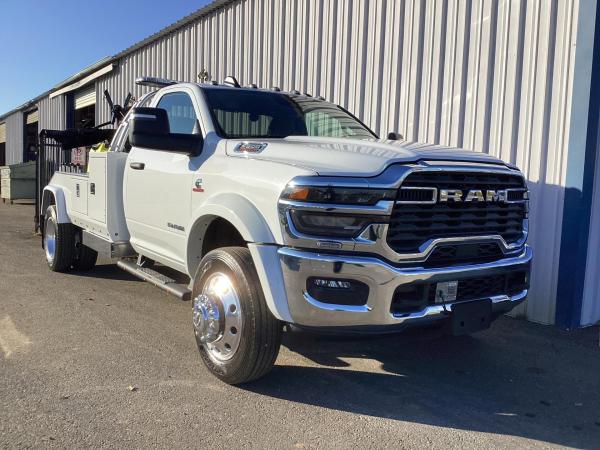 2025 RAM 5500 Big Horn Level 2. package. Cummins 6.7L I-6 OHV Direct Diesel Injection, 24 Valve Intercooled Turbo, 360HP @ 3,000 rpm, 800 lb-ft @ 1,600 rpm, Transmission: 8-Speed TorqueFlite HD Automatic (DFM).Power Take-Off Right/Left; Transfer Case Skid Plate Shield 136 amp Alternator, , Exhaust brake. Engine Block Heater, 120" CA, Non-Independent Front Suspension, Rear Leaf Suspension, 4 Wheel Anti-Lock Braking System, Daytime Running Lights, Dual Air Bags, A/C, Radio: Uconnect 5 Nav w/12.0" Display 6 speakers, GPS Navigation Cruise Control, Power Windows, Power Door Locks, 40-20-40 Split Bench Seat, Vinyl Black Material, Upfitter Switches (5). Fog lamps. Keyless entry. Body Color fenders. Manual DPF Regen., Power 2-Way Driver Lumbar Adjust. 115V Auxiliary Power outlet.Fog lamps 19,500 GVWR, black Cab Steps, 22 Gal Fuel Tank, 225/70R19.5 Tires w/ 19.5 Alum Wheels