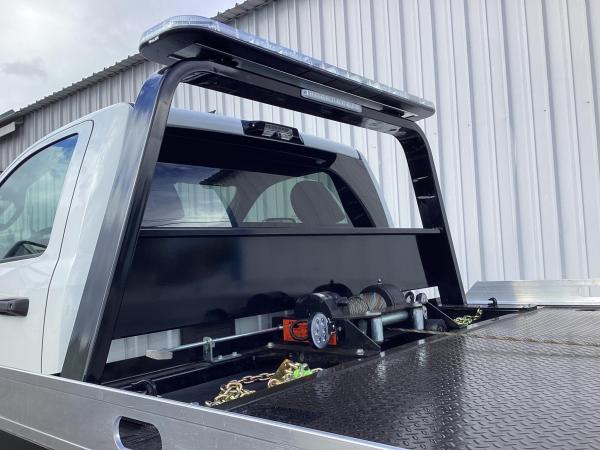 19.6 FT Steel carrier with Independent wheel lift. Full-Length Slide Pads. 8,000lb Winch. Hydraulic pump. Painted Black. Backup lights, backup Alarm. Tow light sockets. Bed anti-tilt lockout/ right and left Chain Trays. Safety Chains (2-front, 2 rear) Dual lighted controls. FMVS 108 Lighting group. Wheelift safety pin. Full-height cab protector.Stainless steel tail light plates. Cable Roller guide. Cable tensioner. Positive lockdown. Prewired Junction box. Straps and Ratchets for Wheelift., Ratchets, 11 Chain lock package body- Body Serial # : ST10C2A240751
